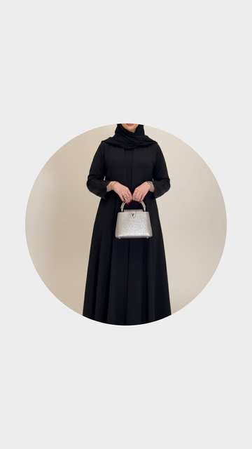 Two-Piece Contrast Abaya with Delicate Beadwork