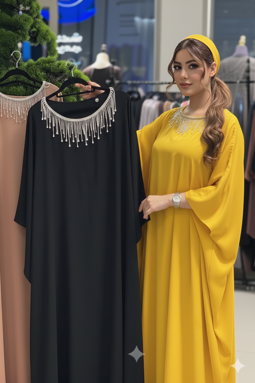Dolman Sleeve Silk Kaftan with Crystal Trim