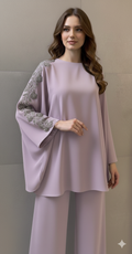 Two-Piece Co_rd Set with Elegant Leaf Embroidery
